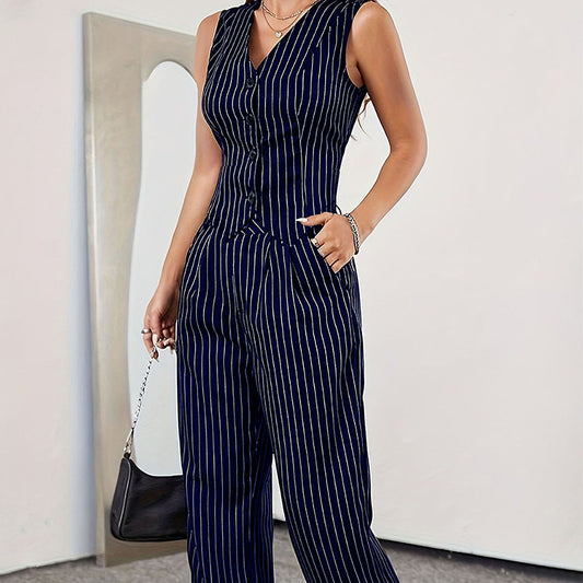Casual Striped Button Vest Loose-fitting Wide-leg Trousers Suit
