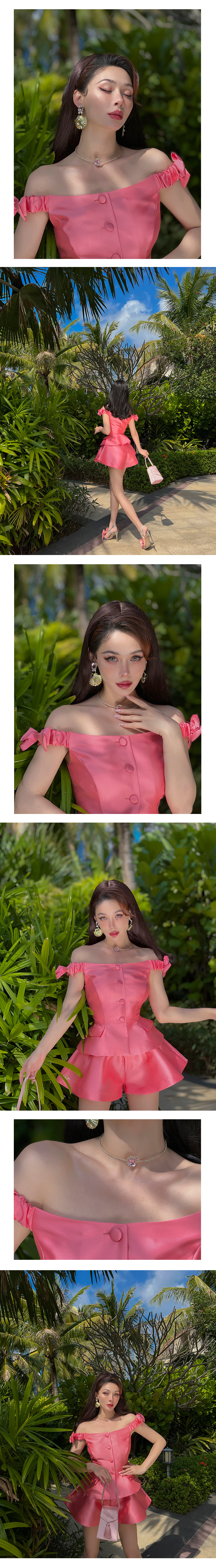 - Design: One-shoulder or off-shoulder design, adorned with a prominent three-dimensional decorative bow at the waist for a statement look.