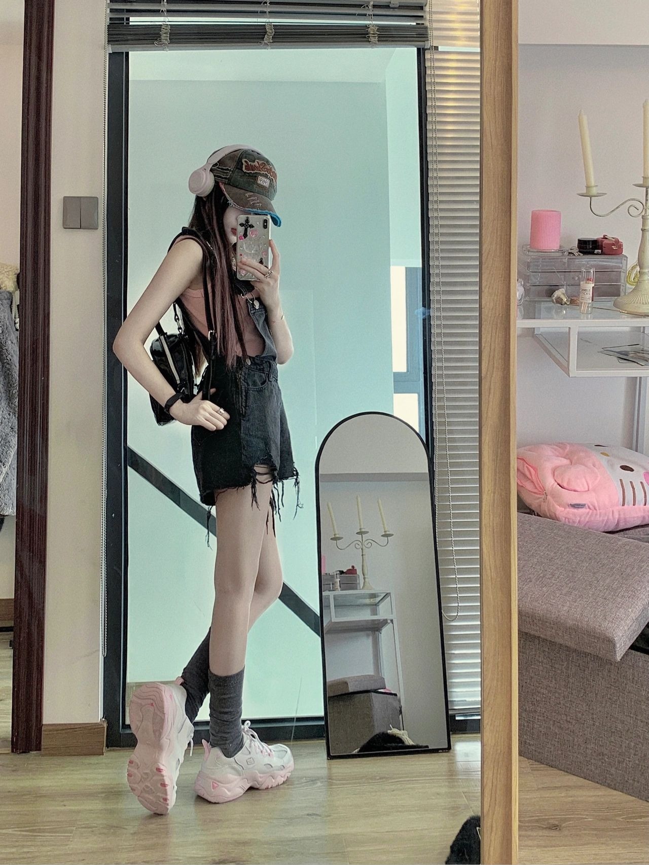 - Design: Wide-leg cut with raw edges for a relaxed, trendy look